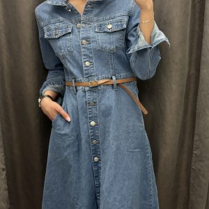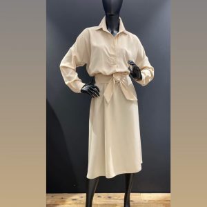 Kötős derekú vászon ing ruha-több színben
